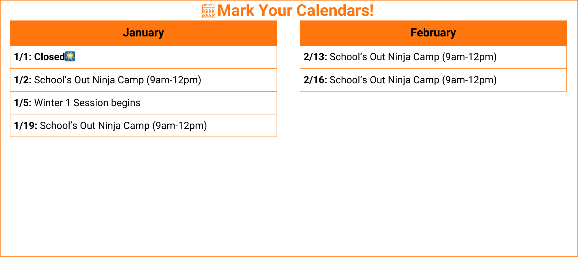 Class & Open Gym Schedule